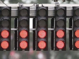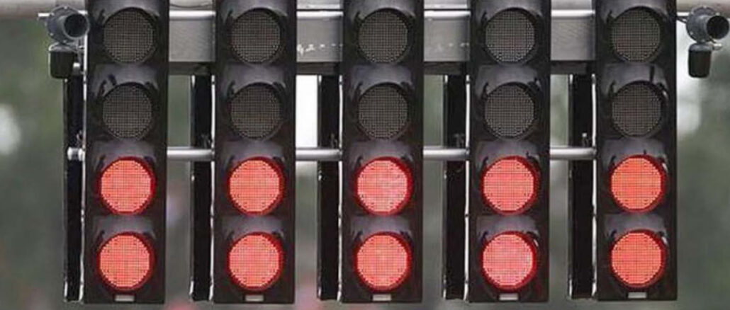 Semáforo en la salida de las carreras de la F-1 desde 1996, con luces rojas que al apagarse todas, señalan la arrancada. Foto: News Auto