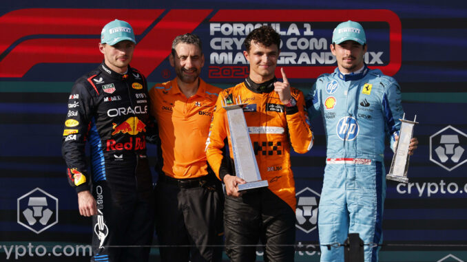 Noticias Max 1ro, Norris, 2do y Alonso 3ro, tras una batalla triunfal hacia el podium, en un Gran Premio de Brazil algo accidentado. 5 noviembre, 2023 Javier Beltran 0