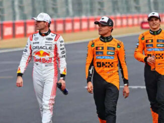 Oscar Piastri y Lando Norris de McLaren con Max Verstappen, Red Bull. Foto: Photo Autosprint.