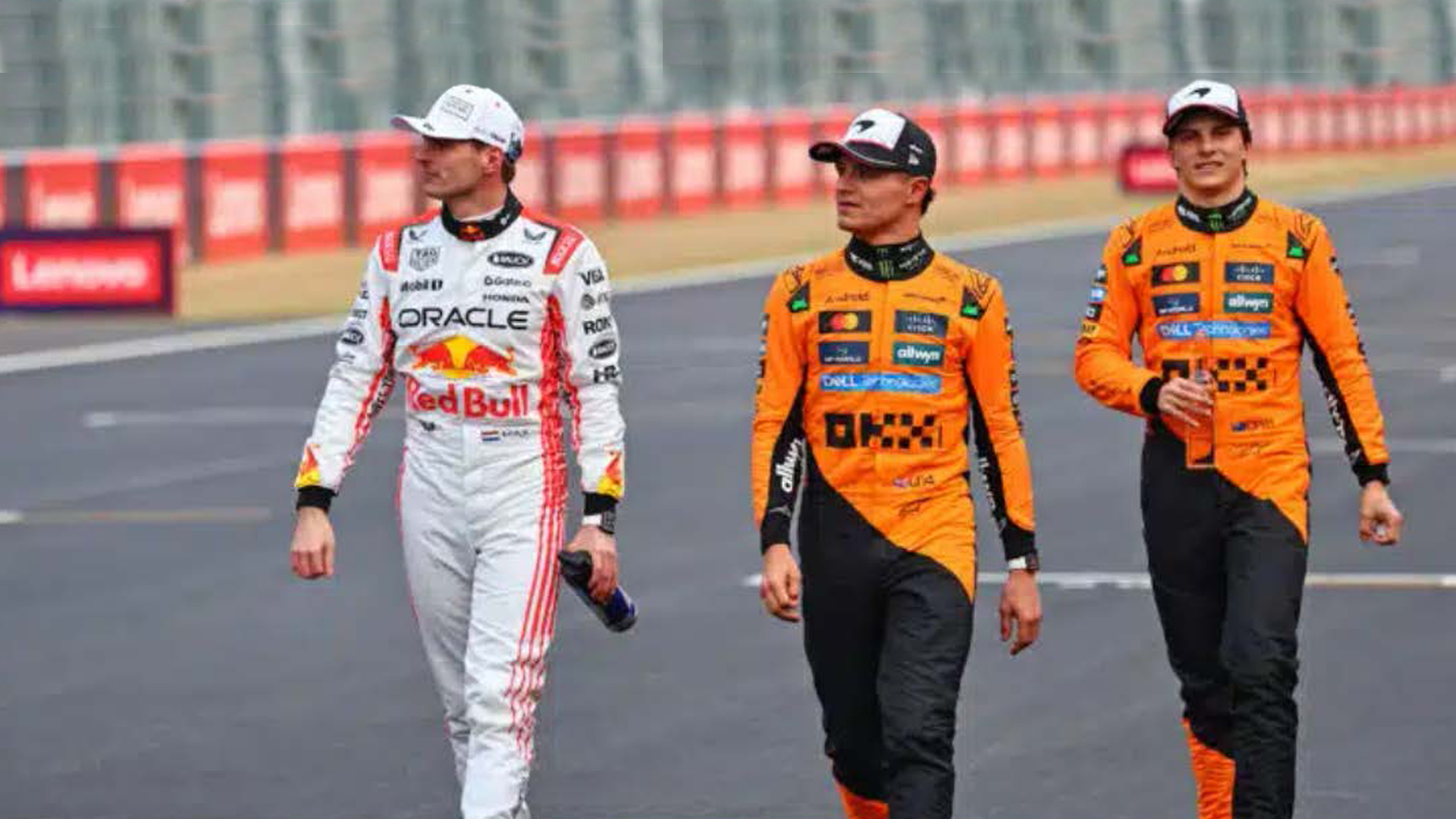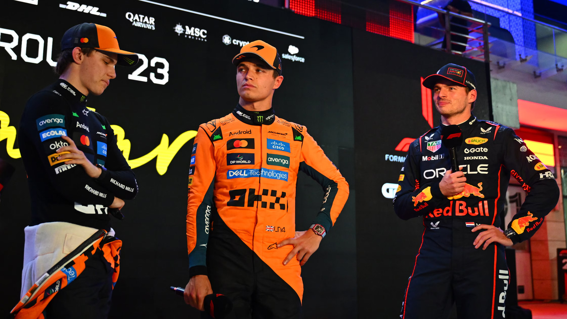 Oscar Piastri y Lando Norris de McLaren con Max Verstappen, Red Bull. Foto: Photo Autosprint.