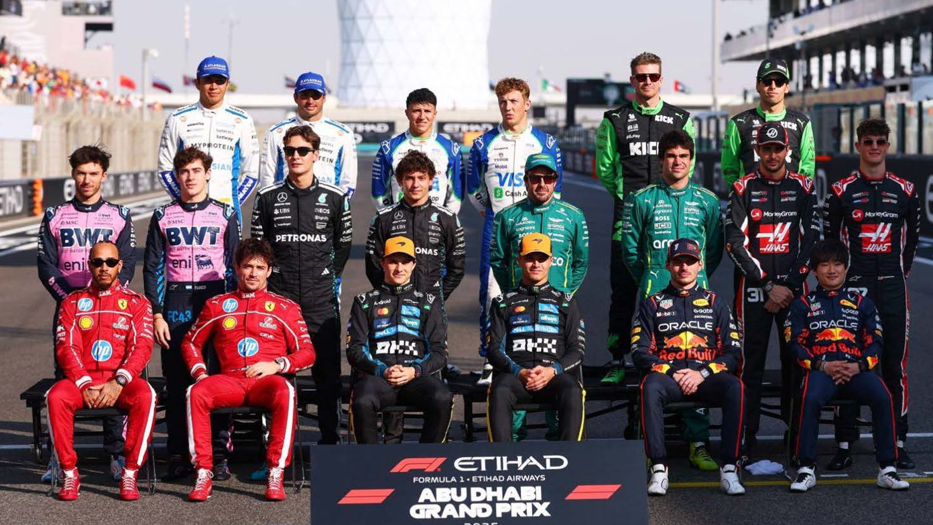 Los pilotos de la parrilla final de la Fórmula Uno 2025. Foto: F1.com